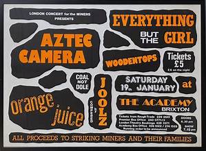 Roddy Frame of Aztec Camera, had got the ball rolling on this one, he had the idea of playing live to raise money for the striking miners and put this wonderful line up together. Edwyn Collins suggested Orange Juice would play first and announced on stage that this was in fact, the last ever Orange Juice gig! I wondered if it was a joke as earlier he had said, ‘My A&R man doesn’t love me any more, he loves Lloyd Cole now’. He was serious though. The band that had ignited my love of semi-acoustic guitars and floppy fringes were calling it a day. The first time I had seen them play live.