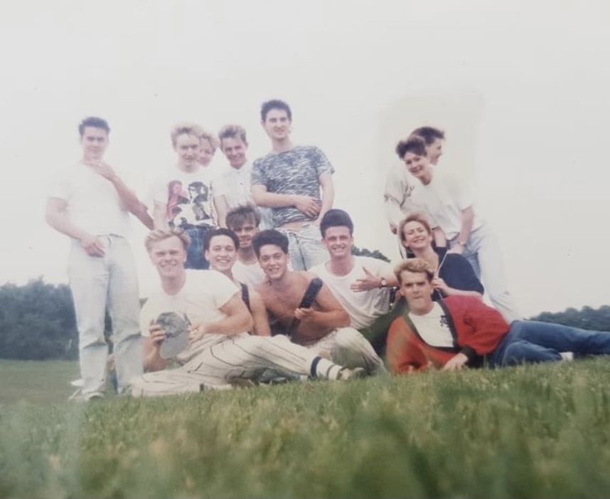 On Sundays there was a tradition for the crowd that drank at The Hero in Bagshot to meet at the Frimley Green Rec and play rounders – here’s a snap captured by Graham ‘Polo’ Mawdesley, including Danny and Rudy with me just visible at the back.