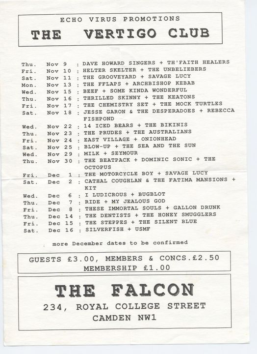 Thanks to Roger Cowell, The Camden Project, Martin Kelly, Andy Weismann, Minty Clinch and Mick Mercer for these photos and flyers.