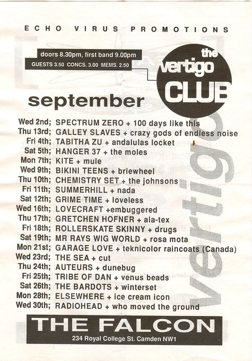 Camden was the epicentre of the indie guitar music scene. So many pubs and venues to watch a band or just hang out in. The Dublin Castle, The Monarch, The Underworld, The Electric Ballroom, Dingwalls, The Falcon, The Good Mixer, The Black Horse, The Camden Palace. There were gigs to choose from, every night. Ultimate was just one of a few Camden based record labels including Food, with Creation just up the road in Primrose Hill. There were PR companies, rehearsal rooms and MTV Europe had their offices by the Lock.