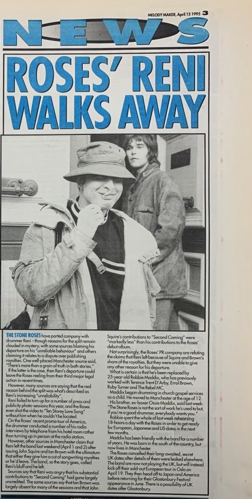 Then in March, Reni left The Stone Roses. They were our favourite band and we had also put them on at The Buzz Club.