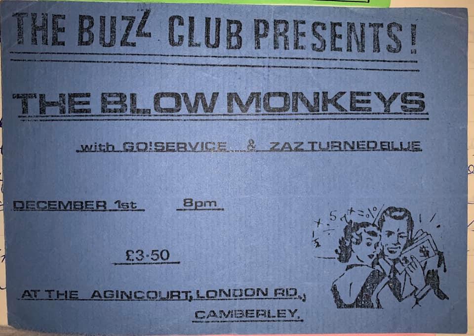 Oh well, we live and learn. I can’t remember much about the gig, I know my band Go! Service supported (what’s the point of having your own club if you can’t play?) and that The Blow Monkeys had an effect on the sale of polo necks and cardigans in the area for a couple of weeks afterwards. Thanks to Tim Paton for the photo.