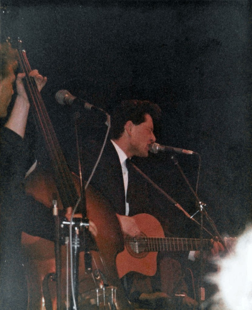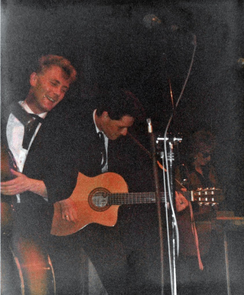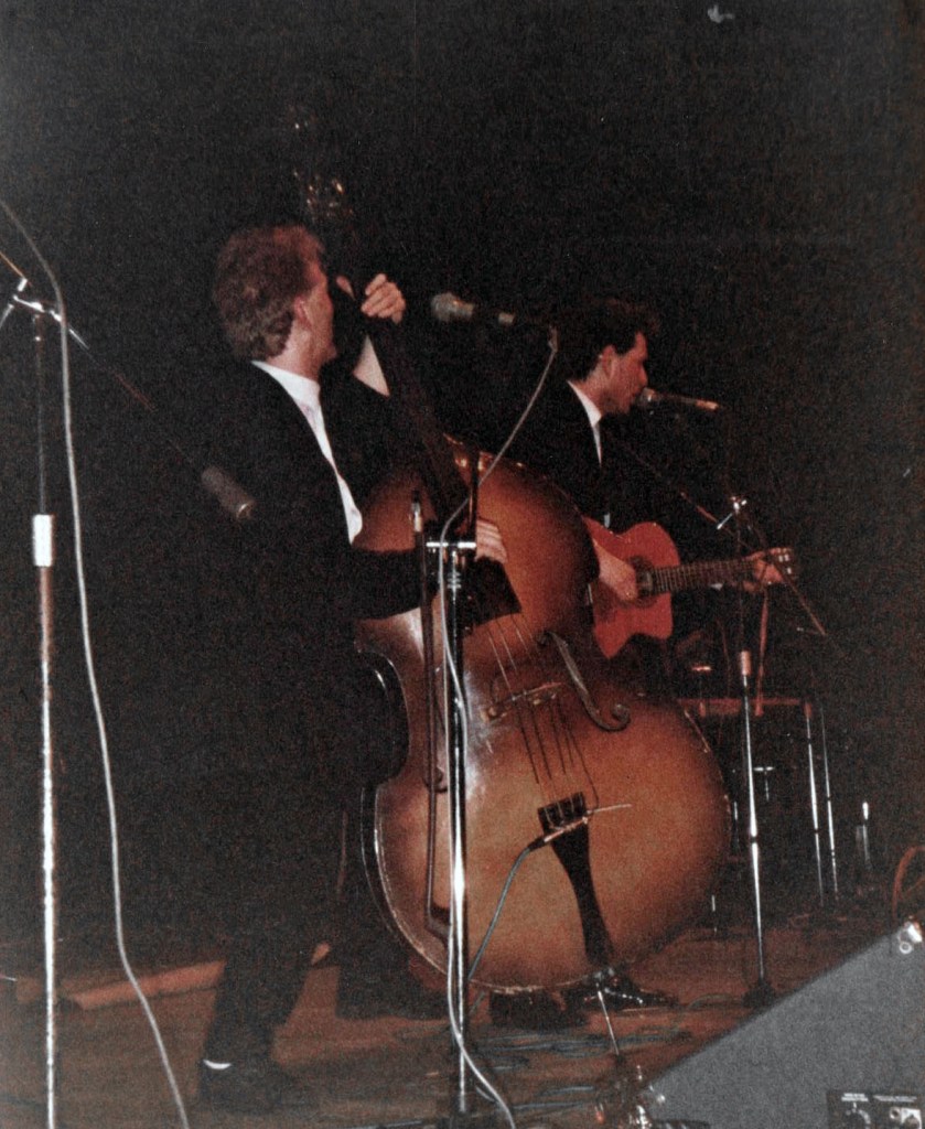 There was a healthy rockabilly / psychobilly scene around us in Surrey. Lots of colourful quiffs, bleached jeans and sleeveless tee shirts. Bands like The Meteors and King Kurt were very popular. Not really our thing, there was however also a more indie side, that produced bands like Terry and Gerry. Their album, ‘From Lubbock To Clintwood East’ was popular in Our Price Woking where I worked, among staff and customers alike. They’d been on tv. a few times too, so I decided to book them.
