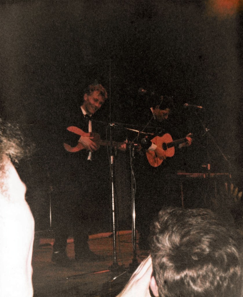 It was freezing in early 1986. I got a call at work on the day of our Terry and Gerry gig to say that there was too much snow on the roof of The West End Centre and they couldn’t open the venue that night. By luck a larger venue, also in Aldershot; The Princess Hall, was free and we were able to hold the gig there. This turned out to be very lucky as more people than we could have fitted into The W.E.C. turned up. We were happily able to accommodate them all at The Princess Hall. It was the first time we made money! I can’t remember how much, maybe £100.