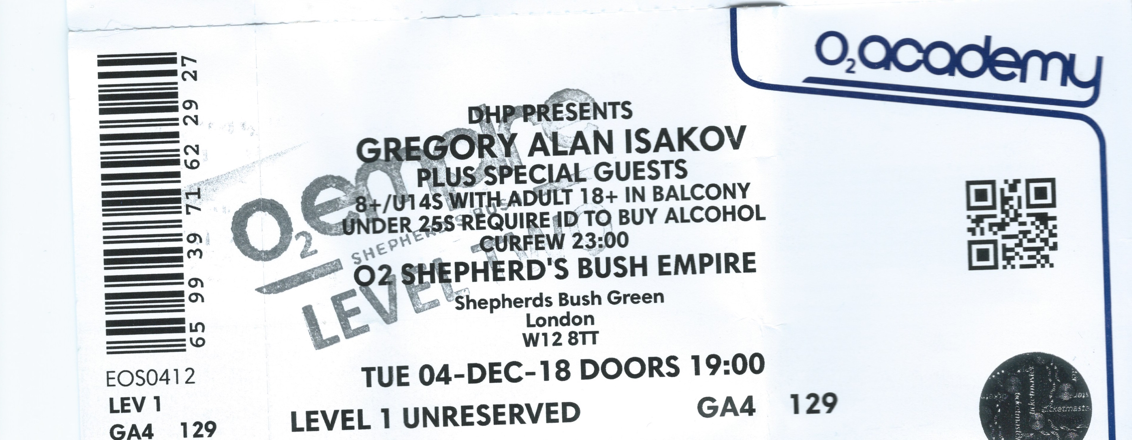 After about a 30 minute gap where old time music played through the PA, the lights faded and a lone figure, wearing his now traditional hat walked onto the stage with his guitar. Gregory played a song and explained half way through the the boys would be joining him soon and things would get more cheery.