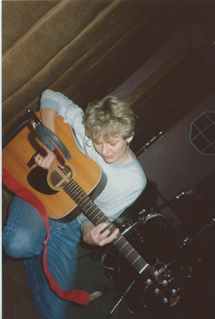 A guy who had seen us play in the mountains got in touch and invited Bluetrain to record a session for his community tv station. We went to the rehearsal studio we had been using and they filmed a short interview and one song. Once again I’m wearing my Lloyd Cole tee shirt!