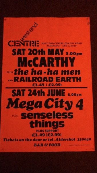 Back down to Aldershot on 20th May for another Buzz Club. McCarthy‘s second visit. They had also played the previous year when their debut album, ‘I Am A Wallet‘ was released. Dave Driscoll, A.K.A. Fruitier Than Thou was in the audience and recorded the gig on his Sony Walkman.