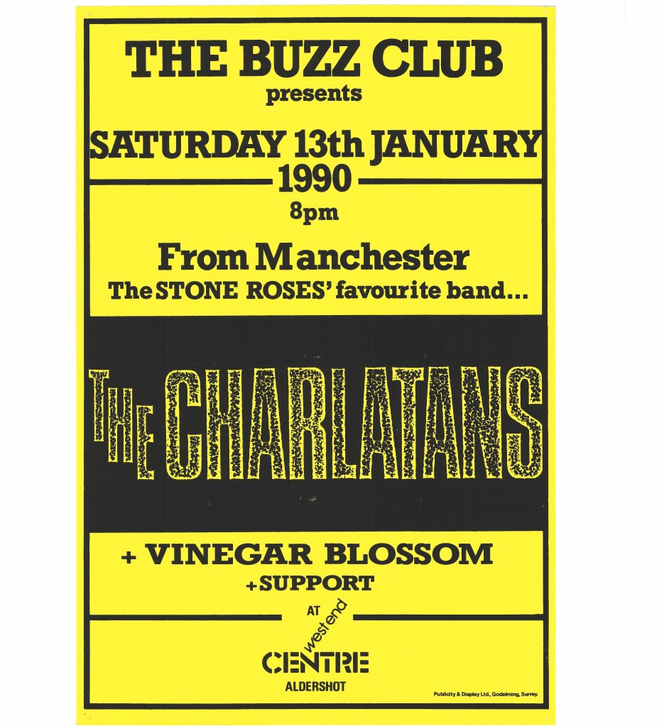 At Mayking Records, Danny was the production planner for a 12″ called ‘Indian Rope‘ by a band called The Charlatans. We were playing it at home, before it was released, and loving it. I called their agent, Alex Nightingale (Annie’s son) and booked them to be the first Buzz Club of the new decade. I had read The Stone Roses were fans, so put that on the posters.