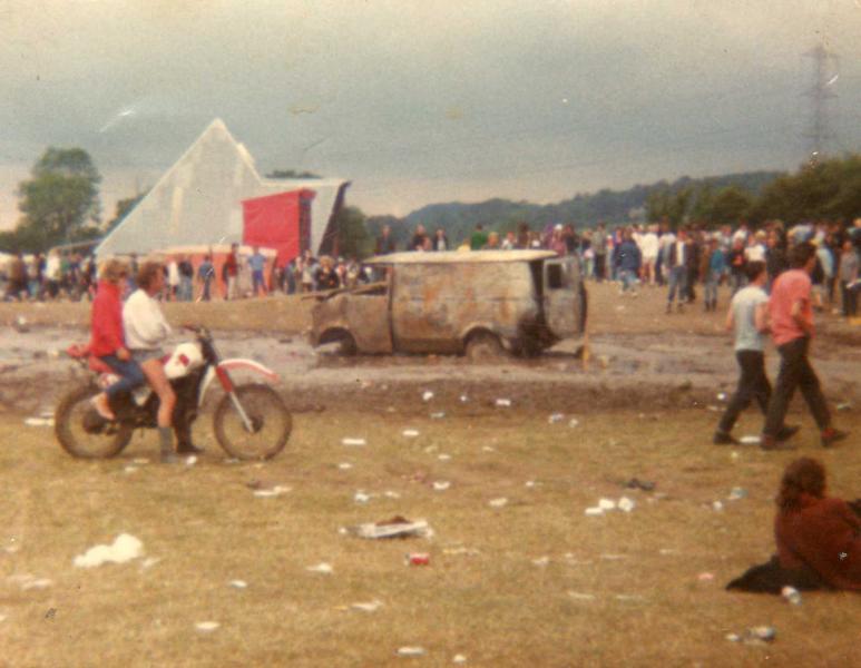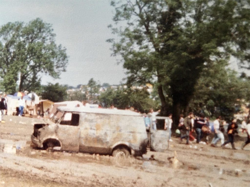 A van had been left in a huge puddle in the middle of one of the fields right by the Pyramid Stage on day one. Every time we walked past, it was in a worse and worse state of repair. People smashed the windows and were chucking mud at it. Eventually someone had actually set fire to it. A handy land mark truth be told. ‘See you by the van later’
