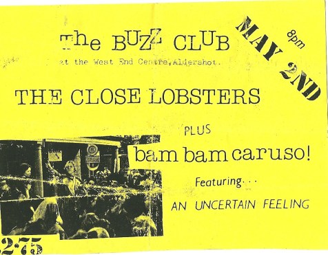 This is another of the gigs Philip Hutchinson found photos and live cassette recordings in his garden shed in 2018. Here are his previously unseen photos of The Close Lobsters at The Buzz Club.