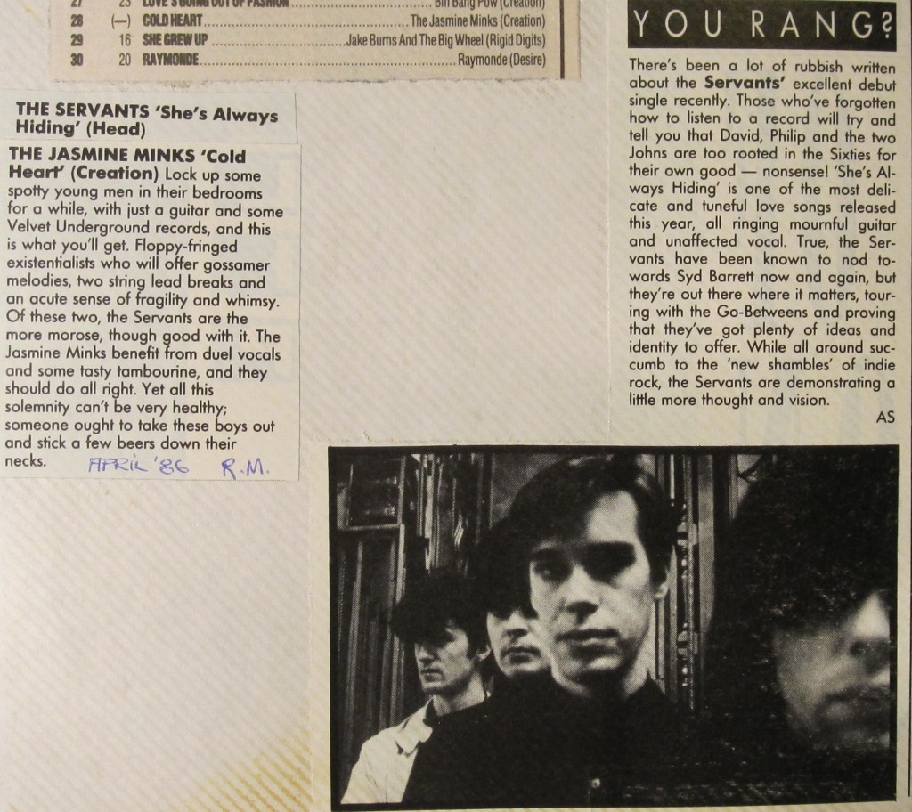 In February I went to east London to see a 2nd hand AC30 amp. I thought all AC30’s were tubes but this one turned out to be a solid state AC30 from the Rose Morris era (1979-85). It had Vibrato/Tremelo/Reverb and sounded good so I paid £160 for it. Jeff Barrett (later Heavenly records founder) worked with Creation records and now appeared on the Servants horizon. Jeff was friendly with Bill Prince, had plenty of contacts and seemed a decent guy, Jeff provided more ladders up the board.