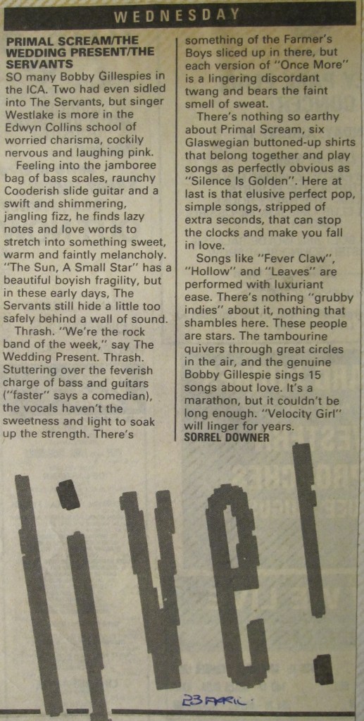 23/7 ICA, SW1 – Primal Scream, Wedding Present, *