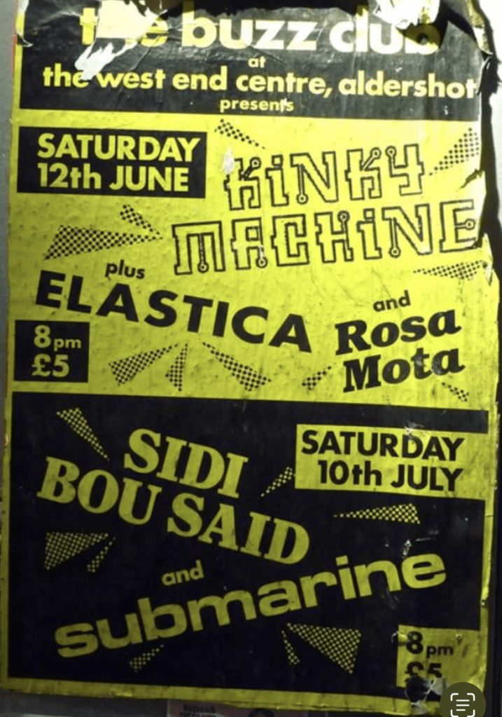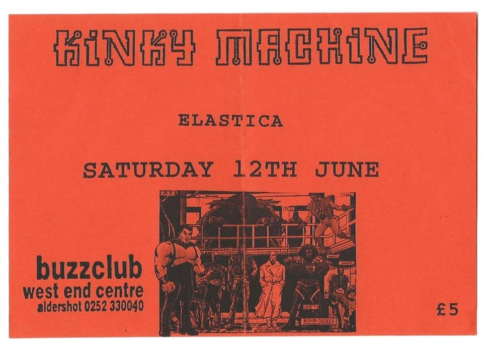 Ultimate Records was based on Royal College Street in Camden, just opposite The Falcon. There was a rehearsal studio near by and a squat where various bands hung out round the corner. As such, lots musicians would wander passed or into our offices all the time. I often used to bump into Justine and Donna and heard about their new band, Elastica. Justine stopped for a chat one day and said they were about to play their first gigs and could they play The Buzz Club? I knew she used to be in Suede and that she was currently going out with Damon from Blur but most importantly knew she was cool, I liked her and so of course said ‘yes’. I offered them the support slot with Kinky Machine on 12th June 1993.