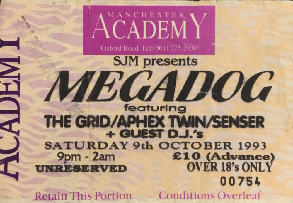It felt like each time I saw them, Senser were getting better and better and it was particularly inspiring seeing them on a big stage with a wonderful light show and fantastic sound. Even though they were away from home, outside London, they went down a storm. Loads of people clearly had the singles. We were all in vibrant moods as we headed under the archway on Faulkner Street, towards the restaurants. A large and lively basement awaited us. Full of chat and clatter. We ate, drank and laughed our way through a couple of hours of talk and questions, then headed back over to the Academy. Aphex Twin was a good way through his set, dry ice, warm air, drilling noises and thumping bass shook us back into Megadog world. We caught up with Michael Dog before The Grid went on and talked about future releases on his label. Things were very exciting.