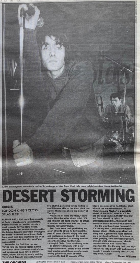 Oasis were back in London and played the 100 Club on 24th March. I can’t remember how, but I got a plus one on the guest list, and so saw them for the second time in a couple of months. Everyone was mad for it by now. Sanding there, watching them, was the first time I felt older than the fans. I had been there for the rise of The Stone Roses, was even involved – we had put them on at the Buzz Club, and seen them loads of times. The Stone Roses had disappeared though and here was the next brigade. Normally, I would have got their agent’s number and offered them a gig, but we had stopped the Buzz Club in December 1993, so I felt slightly adrift as I watched this band, on fire and about to take over the world.