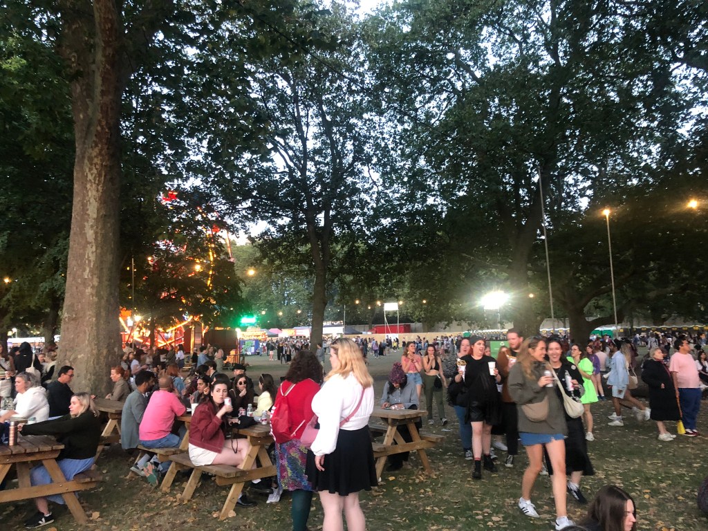 This meant we now travelled, late morning on the day of the gig. By the time we had checked in to our hotel in Stratford, relaxed for a couple of hours and got to the festival site, it was late on this glorious sunny afternoon. The park itself was lovely to walk through, full of families and friends enjoying their Bank Holiday Monday.