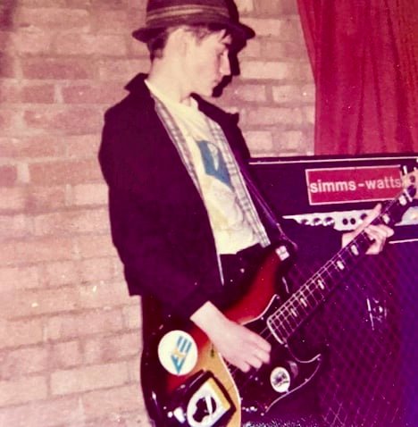 I was saving up to get a red leather jacket like the one Chrissie Hynde wears on the cover of the first Pretenders album. I now decided on a change of plan – I was going use my savings to buy a guitar. I had chosen a cheap Spanish, nylon stringed one but Tom pointed to the Smash Hits posters on my bedroom walls and said, ‘Don’t get that, get an electric like they all play’. He lent me a Gibson LP guitar the brothers at his house had. All six Carroll brothers are great musicians. I started to learn the guitar. Tom taught me a few barre chords, how to play a major, how to play a minor and that was that. I was off.