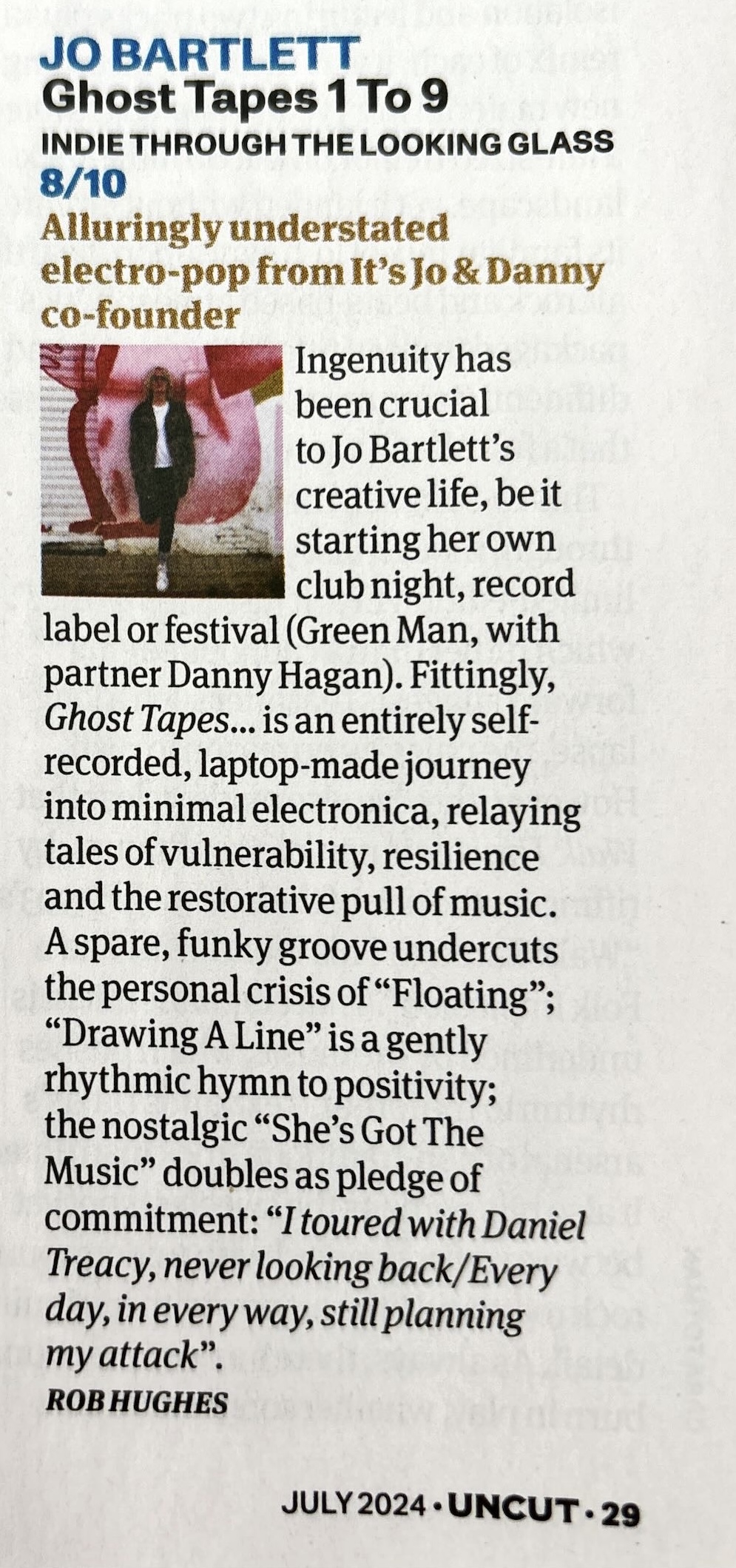 I’m very pleased about this – my album ‘Ghost Tapes 1 to 9’ gets an 8/10 review in the new Uncut magazine.