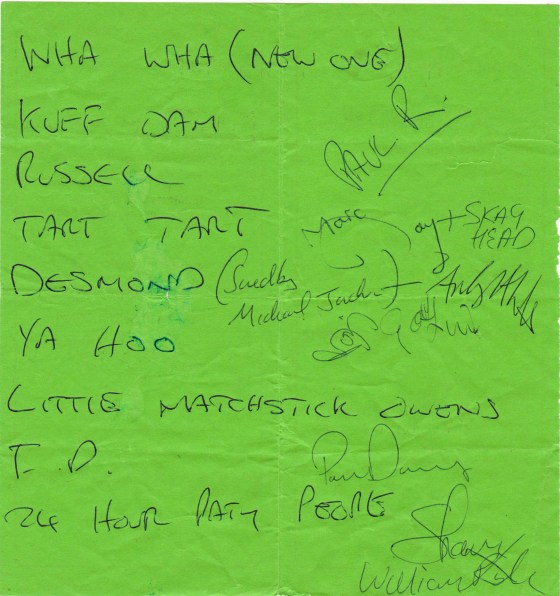 Buzz Club: Assorted signed fliers and set lists – just found!