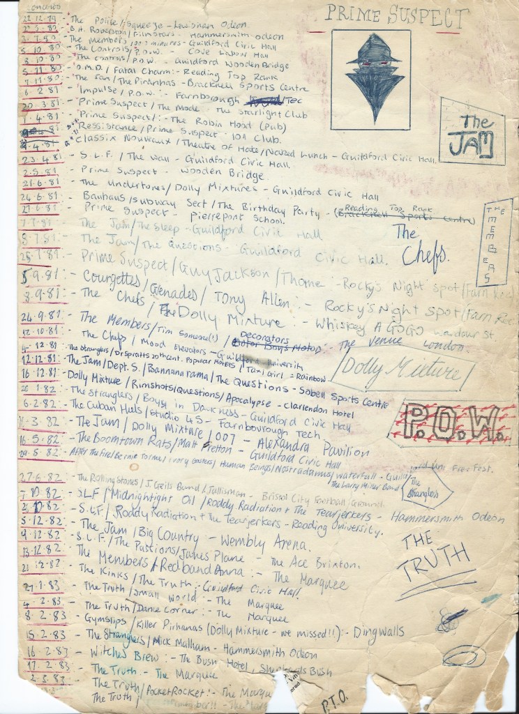 Starting with The Police and Squeeze December 1979….until April 1990, when I stopped writing them down. Hundreds of gigs have followed!
