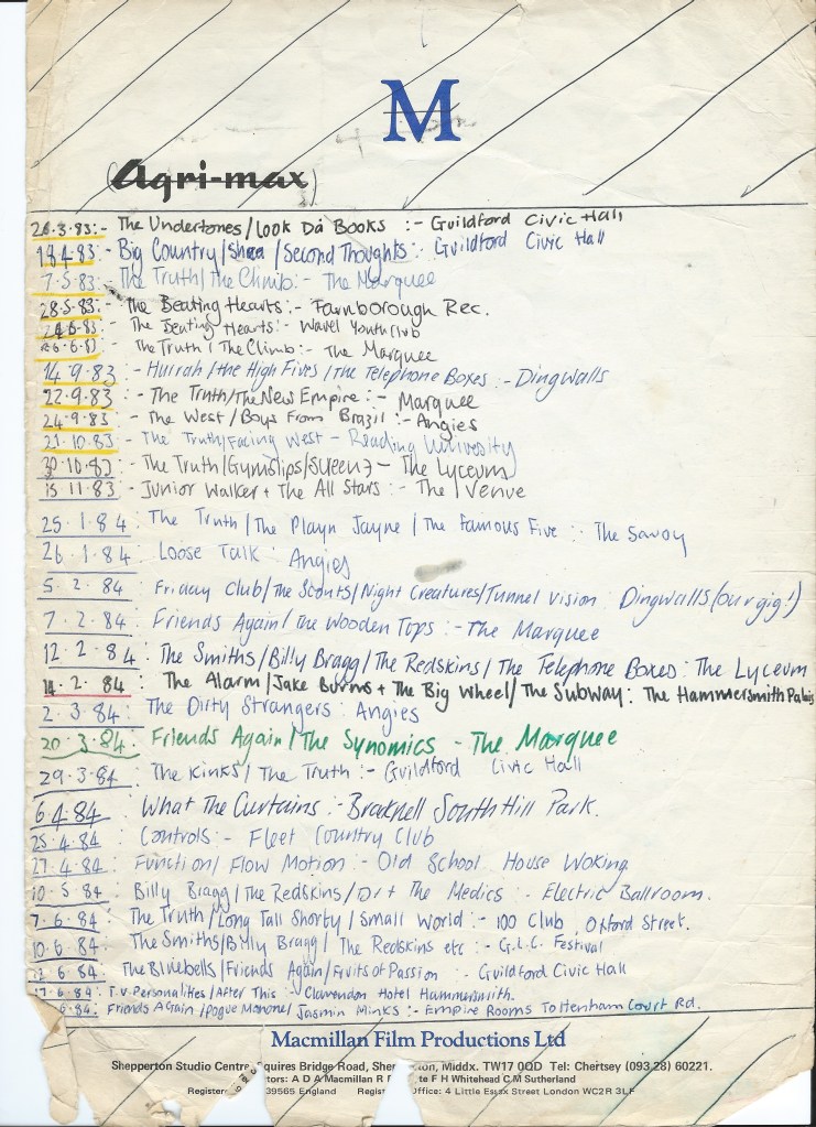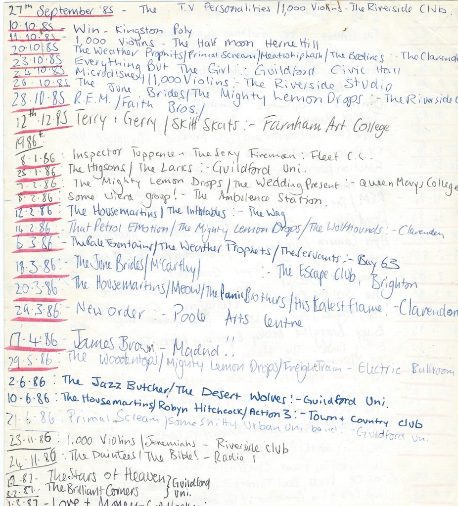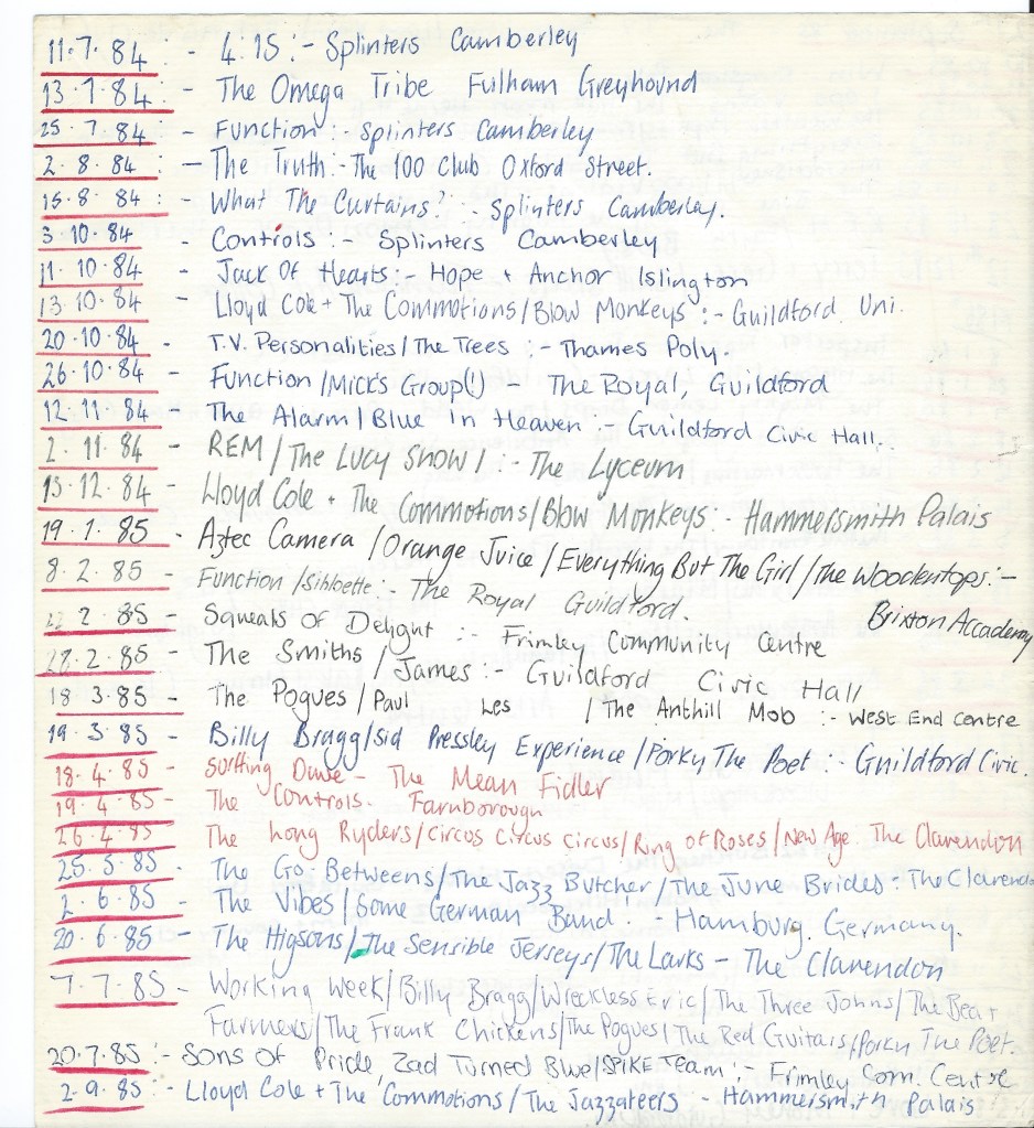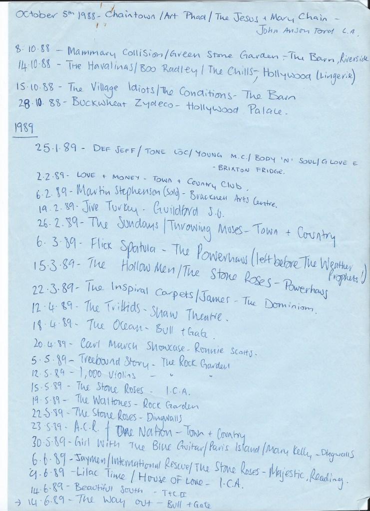The Gigs I Went To (in more detail)